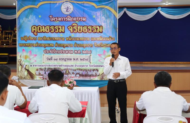 รายละเอียด : วันที่ 18 กรกฎาคม 2568 อำนวยการโดยงานการเจ้าหน้าที่ สำนักปลัดเทศบาลตำบลกุดแฮด จัดทำโครงการฝึกอบรมคุณธรรม จริยธรรมแก่ผู้บริหาร สมาชิกสภาเทศบาลพนักงานเทศบาล และพนักงานจ้าง ประจำปีงบประมาณ พ.ศ. 2568 ณ อาคารอเนกประสงค์เทศบาลตำบลกุดแฮด อำเภอกุดบาก จังหวัดสกลนคร โดยมีนายชัยยุทธ วัยเหนิดลื้อ ให้เกียรติเป็นประธานในพิธี