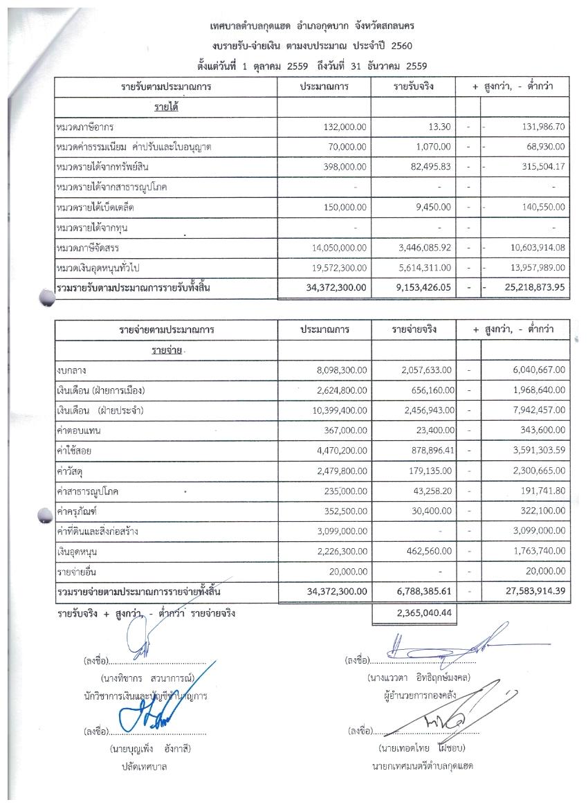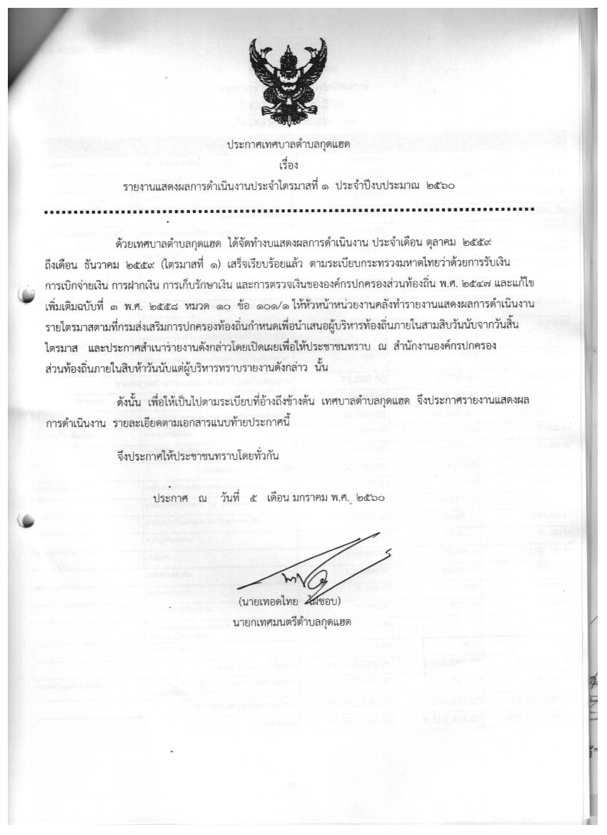 รายงานแสดงผลการดำเนินงานประจำไตรมาสที่ ๑ ประจำปีงบประมาณ ๒๕๖๐