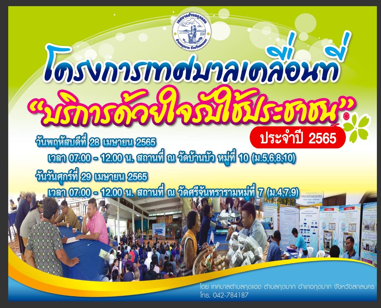 ชื่อเรื่อง : ประชาสัมพันธ์ ขอเชิญร่วมโครงการเทศบาลเคลื่อนที่ “บริการด้วยใจรับใช้ประชาชน” ประจำปี 2565