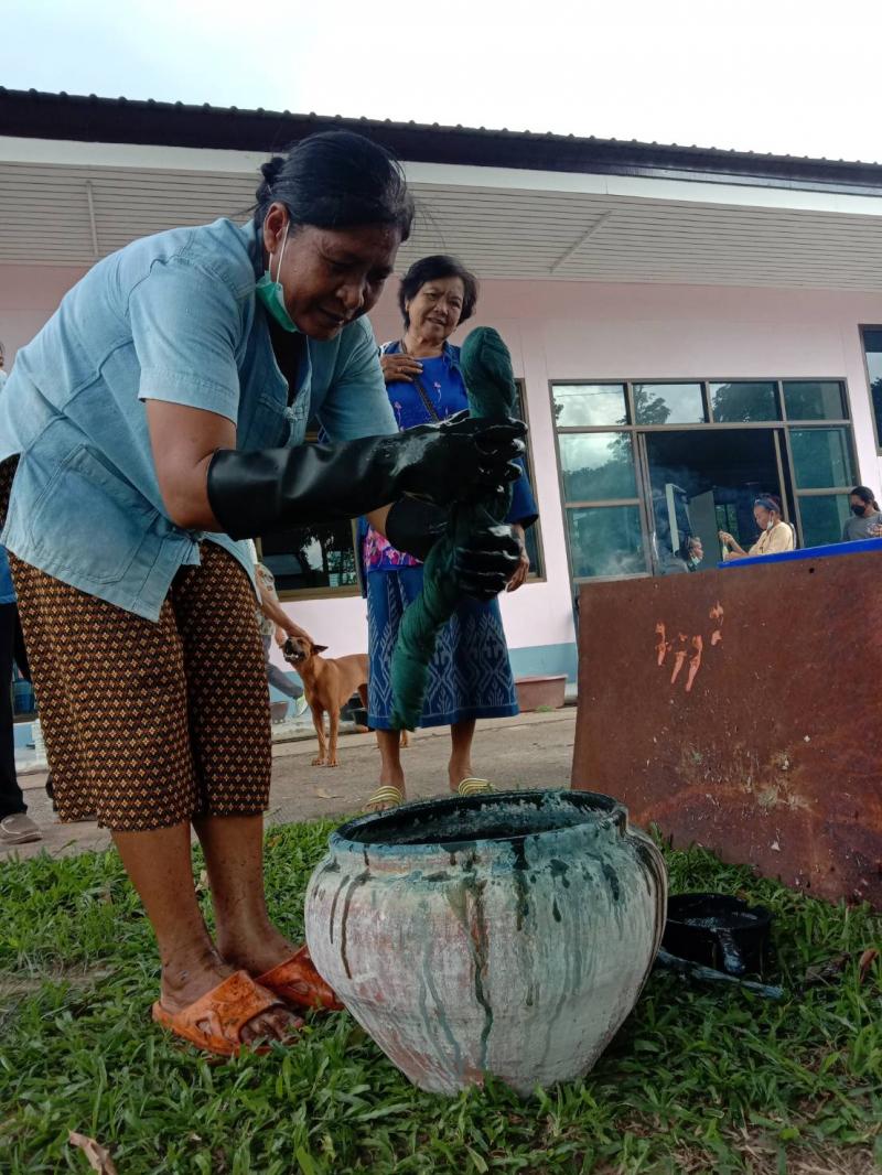 การพัฒนาและยกระดับผลิตภัณฑ์ผ้าย้อมครามสู่ตลาดที่หลากหลาย”ภายใต้โครงการพัฒนาคุณภาพชีวิตและยกระดับรายได้ให้กับคนในชุมชนฐานราก ประจำปีงบประมาณ 2565