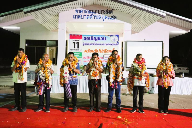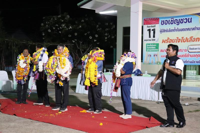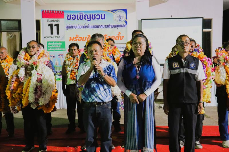 รายละเอียด : วันที่ 7 พฤษภาคม 2568 ณ ลานหน้าเทศบาลตำบลกุดแฮด ตำบลกุดบาก อำเภอกุดบาก จังหวัดสกลนคร เทศบาลตำบลกุดแฮด ดำเนินการประชาสัมพันธ์และรณรงค์การเลือกตั้งตามโครงการจัดการเลือกตั้งสมาชิกสภาเทศบาลและนายกเทศมนตรีตำบลกุดแฮด ซึ่งจะมีการเลือกตั้งสมาชิกสภาเทศบาลตำบลกุดแฮดและนายกเทศมนตรีตำบลกุดแฮดในวันที่ 11 พฤษภาคม 2568 เพื่อให้ประชาชนมีส่วนร่วมในการปกครองท้องถิ่นโดยการแสดงเจตนารมณ์ลงคะแนนคัดเลือกตัวแทนของตนเองเข้ามาทำหน้าที่ทั้งฝ่ายบริหารและฝ่ายสภาท้องถิ่น โดยมีนายบุญเพ็ง ฮังกาสี ปลัดเทศบาลตำบลกุดแฮด เป็นประธานในพิธี