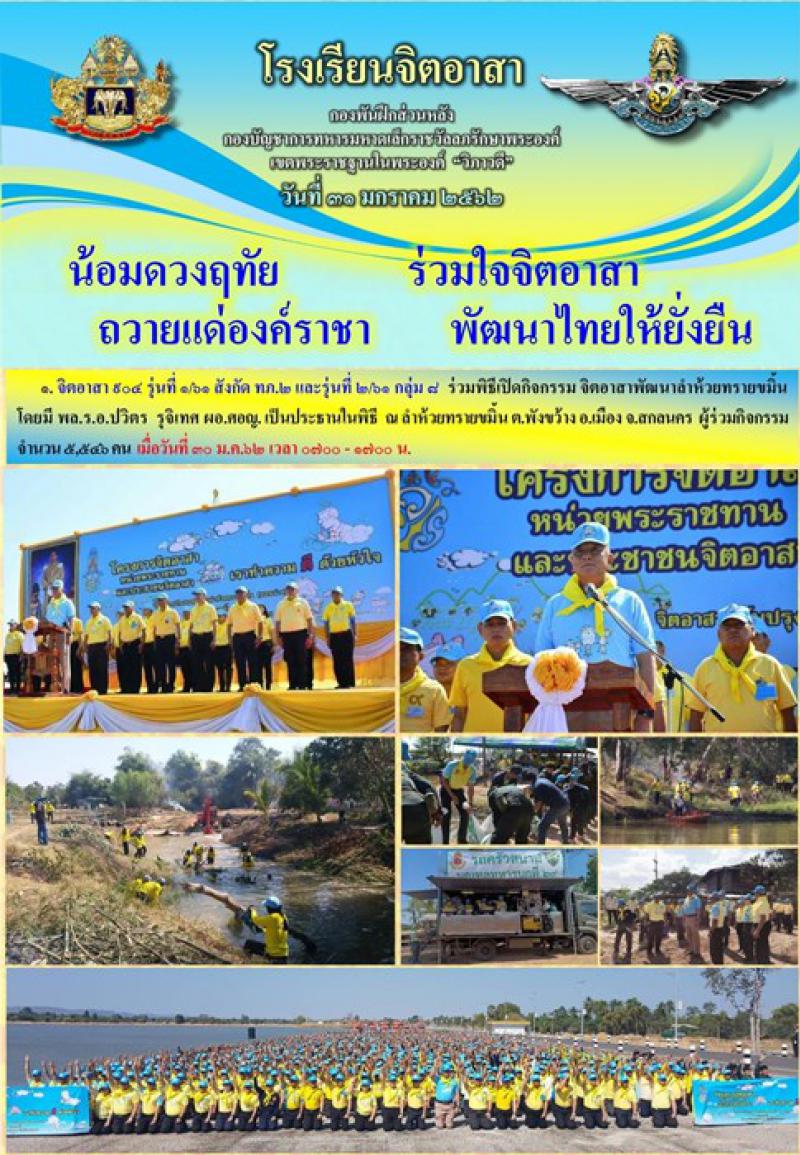 รายละเอียด : เทศบาลตำบลกุดแฮดนำโดยนายเทอดไทย ไฝชอบ นายกเทศมนตรีตำบลกุดแฮด พร้อมด้วยคณะผู้บริหารท้องถิ่น สมาชิกสภาท้องถิ่น พนักงานเทศบาล พนักงานจ้างในสังกัดและประชาชนจิตอาสาในพื้นที่เทศบาลตำบลกุดแฮด ได้เข้าร่วมกิจกรรมจิตอาสา "เราทำความดี ด้วยหัวใจ" ณ อ่างเก็บน้ำห้วยทรายขมิ้น อันเนื่องมาจากพระราชดำริ ด้วยจังหวัดสกลนคร โดยอำเภอกุดบากรับผิดชอบปรับปรุงพัฒนาลำห้วยทรายขมิ้น (ตอนล่าง) ณ บ้านน้อยหัวคู หมู่ที่ 7 ตำบลขมิ้น เพื่อให้สามารถระบายน้ำได้อย่างมีประสิทธิภาพในฤดูน้ำหลาก โดยมี พล.ร.อ.ปวิตร รุจิเทศ ผอ.ศอญ.เป็นประธานในพิธี
