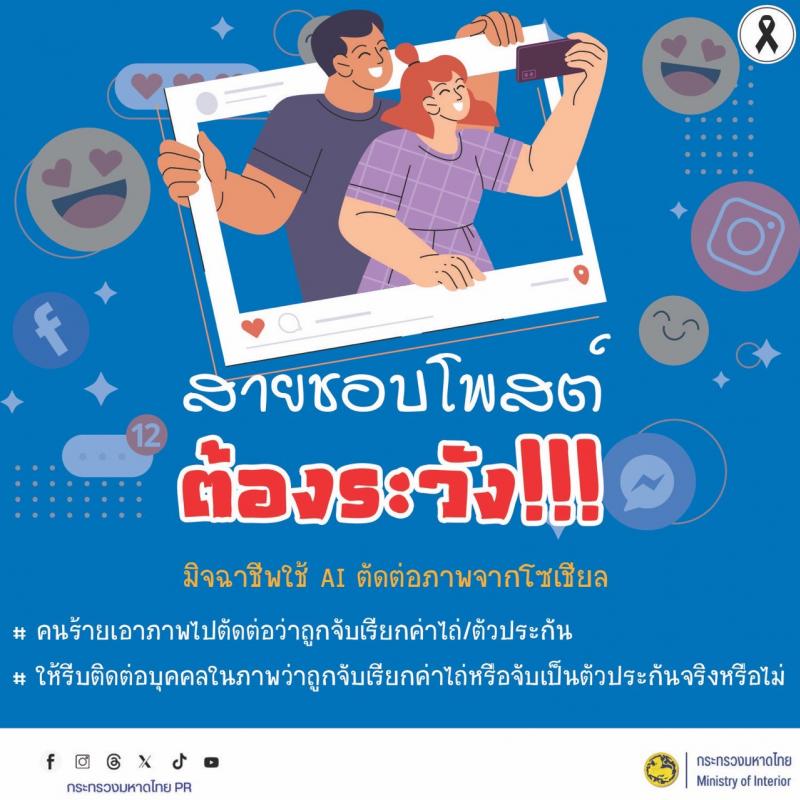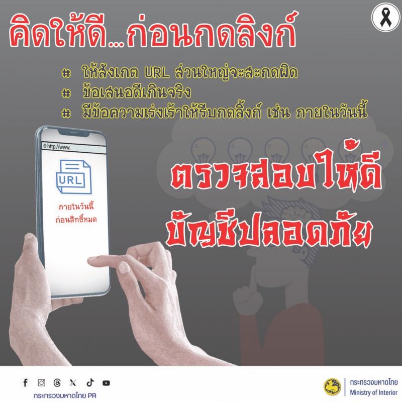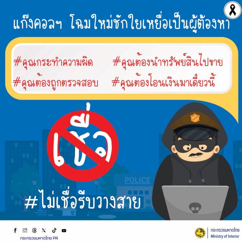 การเผยแพร่ข้อมูลสร้างการรับรู้ภัยอาชญากรรมออนไลน์มุ่งเน้นการแจ้งเตือนรูปแบบมิจฉาชีพ เช่น แก๊งคอลเซ็นเตอร์ (Vishing/Phishing) โดยยึดหลัก "ไม่เชื่อ - ไม่รีบ - ไม่โอน" ผ่านการประชาสัมพันธ์สื่ออินโฟกราฟิกทางสื่อสังคมออนไลน์ เพจหน่วยงานภาครัฐ และแจ้งความออนไลน์ได้ที่ https://www.thaipoliceonline.go.th/ เว็บไซต์ทางการสำนักงานตำรวจแห่งชาติ กลยุทธ์การเผยแพร่ข้อมูลเพื่อสร้างการรับรู้ • สื่อเตือนภัย (Infographic): จัดทำสื่อให้ความรู้เรื่องรูปแบบอาชญากรรมออนไลน์ (เช่น การส่ง SMS/อีเมลแนบลิงก์, แอปฯ เงินกู้ปลอม) เพื่อให้ประชาชนรู้ทันมิจฉาชีพ • ช่องทางหลัก: เผยแพร่ผ่านเว็บไซต์กองสารนิเทศ https://pr.moi.go.th/ แบนเนอร์ MOI เตือนภัย Cyber ของกระทรวงมหาดไทย, เพจ Facebook ของท้องถิ่น และวิทยุชุมชน • สายด่วน/ช่องทางแจ้งเหตุ:การปฏิบัติงานร่วมกัน: บูรณาการหน่วยงานในพื้นที่เพื่อแจ้งเตือนประชาชน และงดส่ง SMS/อีเมลที่แนบลิงก์จากหน่วยงานภาครัฐเพื่อลดความสับสน o แจ้งความออนไลน์: เว็บไซต์ www.thaipoliceonline.go.th (ช่องทางเดียวเท่านั้น) o สายด่วน: 1441 (สายด่วน บช.สอท.) หรือ 081-8663000 (ศูนย์ PCT) ตลอด 24 ชั่วโมง • 6 ประเภทอาชญากรรมออนไลน์ที่พบบ่อย (อ้างอิงจากประกาศเตือนภัย) 1. แก๊งคอลเซ็นเตอร์ (Vishing/Phishing) 2. การหลอกลวงซื้อขายสินค้าหรือบริการ 3. การหลอกลวงให้โอนเงินเพื่อทำงาน (งานออนไลน์) 4. การหลอกลวงให้กู้เงิน 5. การหลอกลวงให้ลงทุน 6. การหลอกลวงให้รักแล้วโอนเงิน (Romance Scam) พระราชกำหนด มาตรการป้องกันและปราบปรามอาชญากรรมทางเทคโนโลยี (ฉบับที่ 2 ) พ.ศ.2568.pdf
