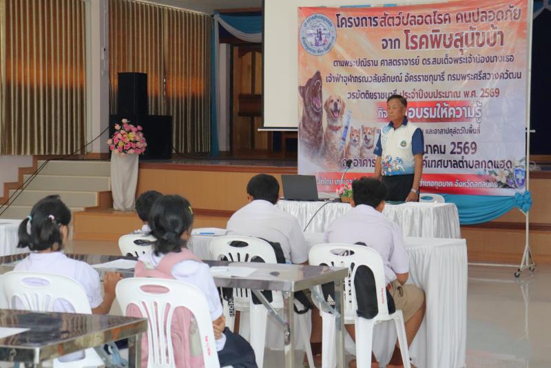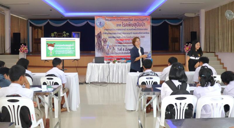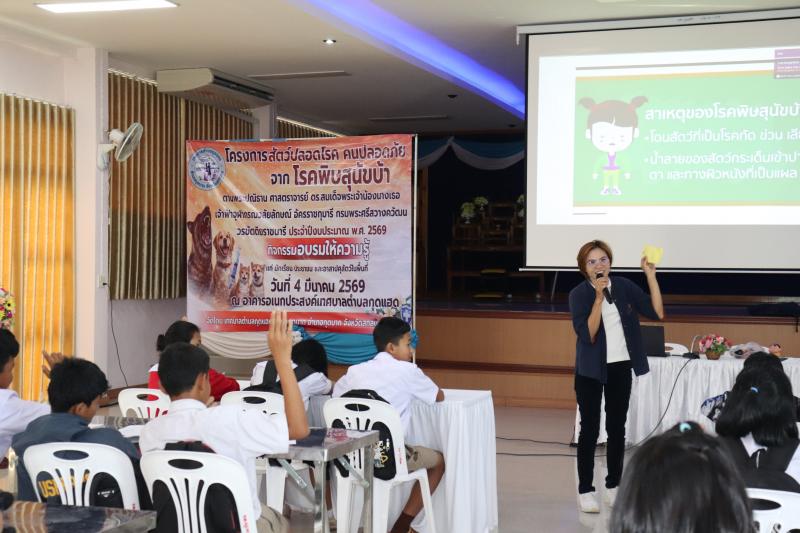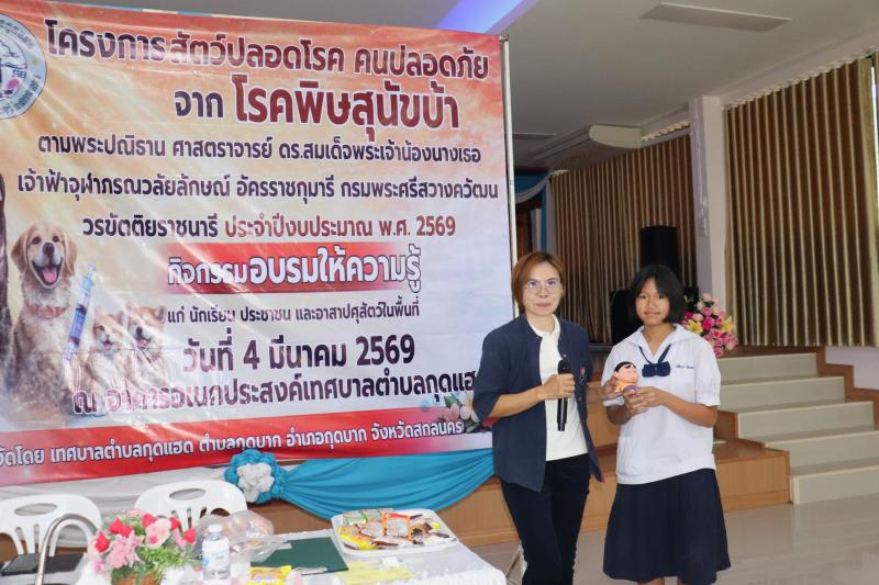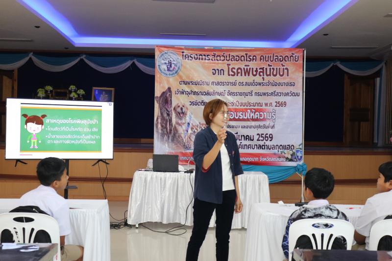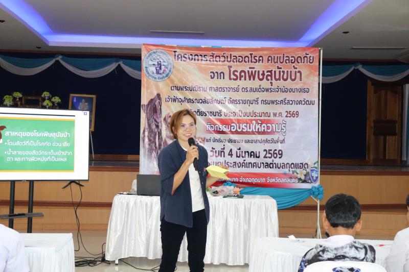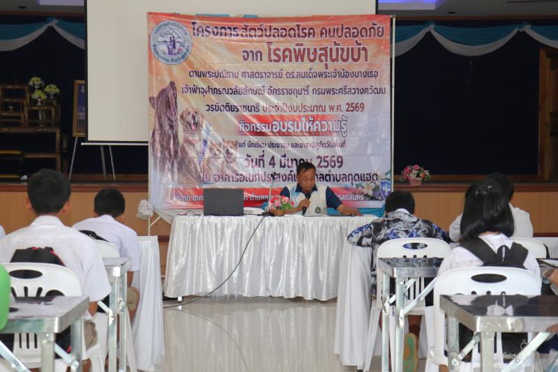 กิจกรรมอบรมให้ความรู้เรื่องการควบคุมและป้องกันโรคพิษสุนัขบ้า เมื่อวันพุธที่ 4 มีนาคม 2569 อำนวยการโดยงานบริการสาธารณสุข เทศบาลตำบลกุดแฮดร่วมกับโรงเรียนบ้านบัวคุรุราษฎร์สามัคคี จัดกิจกรรมอบรมให้ความรู้เรื่องการควบคุมและป้องกันโรคพิษสุนัขบ้า ภายใต้โครงการสัตว์ปลอดโรค คนปลอดภัยจากโรคพิษสุนัขบ้า ตามพระราชปณิธานศาสตราจารย์ ดร.สมเด็จพระเจ้าน้องนางเธอ เจ้าฟ้าจุฬาภรณวลัยลักษณ์ อัครราชกุมารี กรมพระศรีสวางควัฒน วรขัตติยราชนารี ประจำปีงบประมาณ พ.ศ. 2569 ณ หอประชุมเทศบาลตำบลกุดแฮด โดยมีนายประยงค์ ข่วงทิพย์ รองนายกเทศมนตรีตำบลกุดแฮด ให้เกียรติเป็นประธานในพิธีเปิด